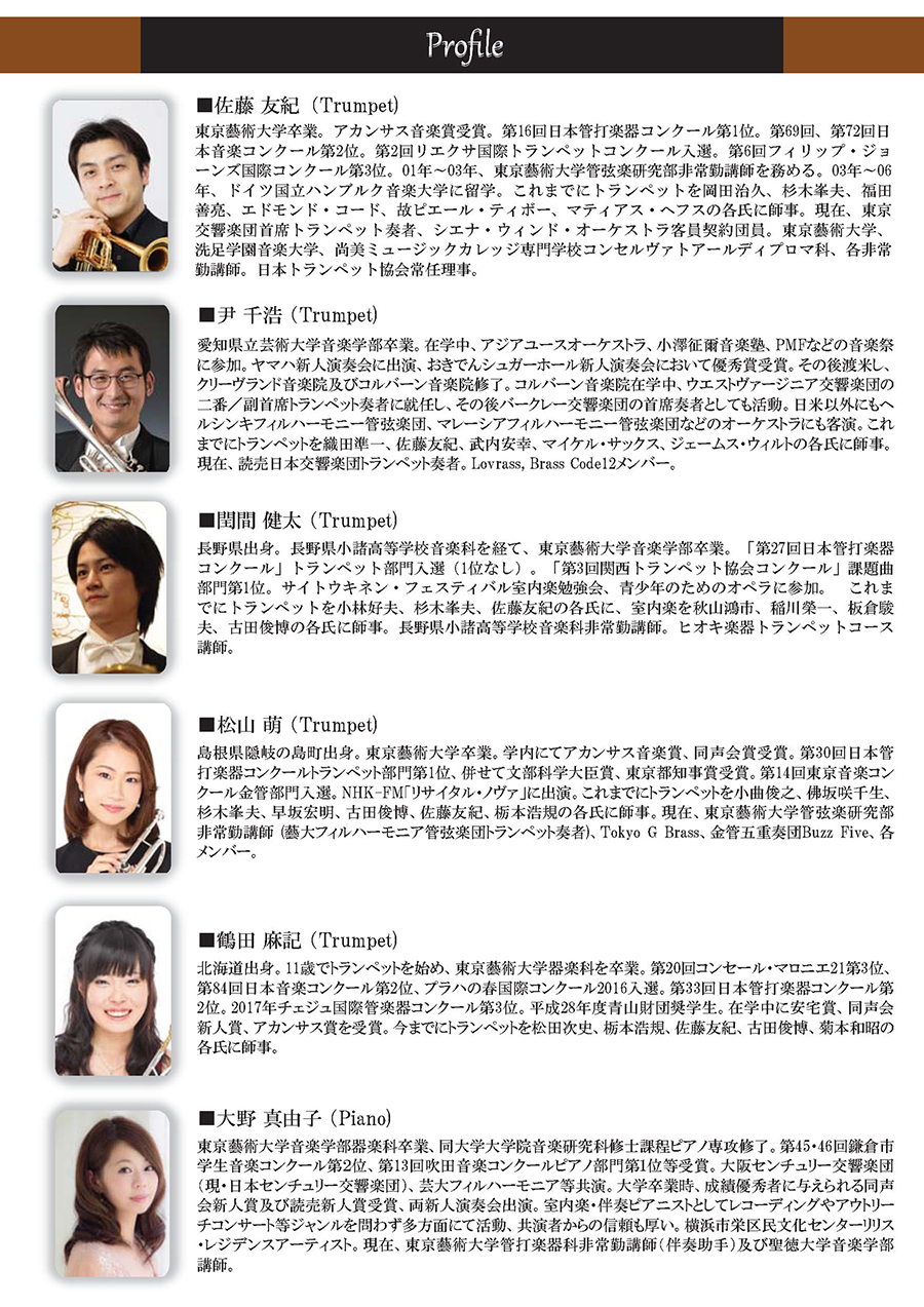 〜佐藤友紀と弟子たちによる〜華麗なるトランペットアンサンブルの響き2017/8/28